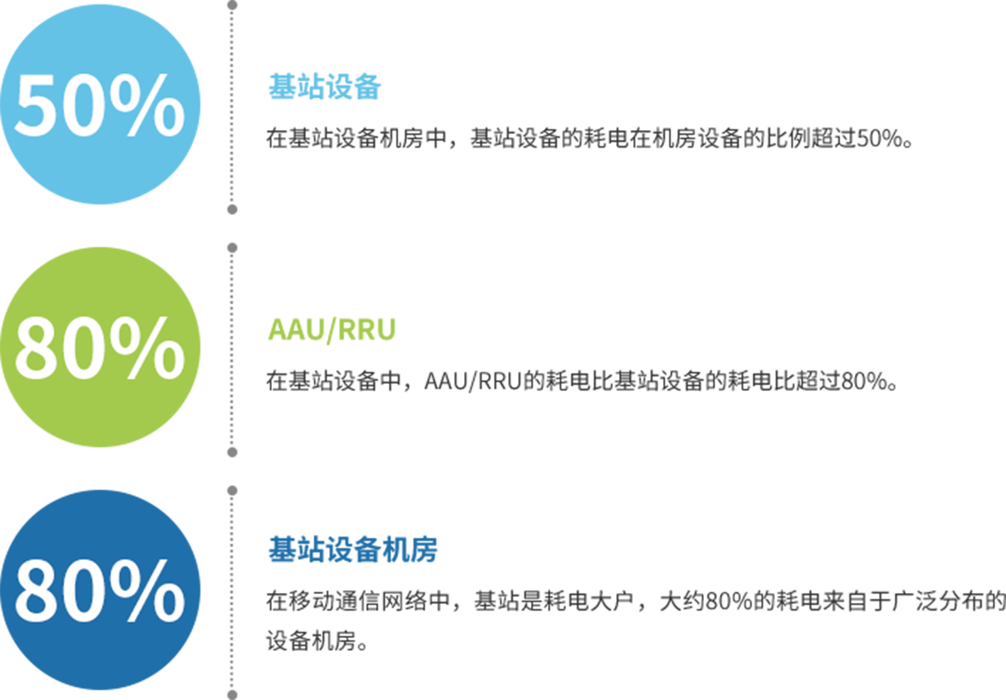 在基站设备机房中,基站设备的耗电比例超过 50%,而在基站设备中,AAU/RRU 的耗电比例又超过 80%。随着技术的进步和产业链的不断成熟,先进的 PA、专用基带芯 片以及高集成度的 TRX 套片的开发和应用,会大幅降低 AAU 功耗,是提升整机能效的关键有效途径。