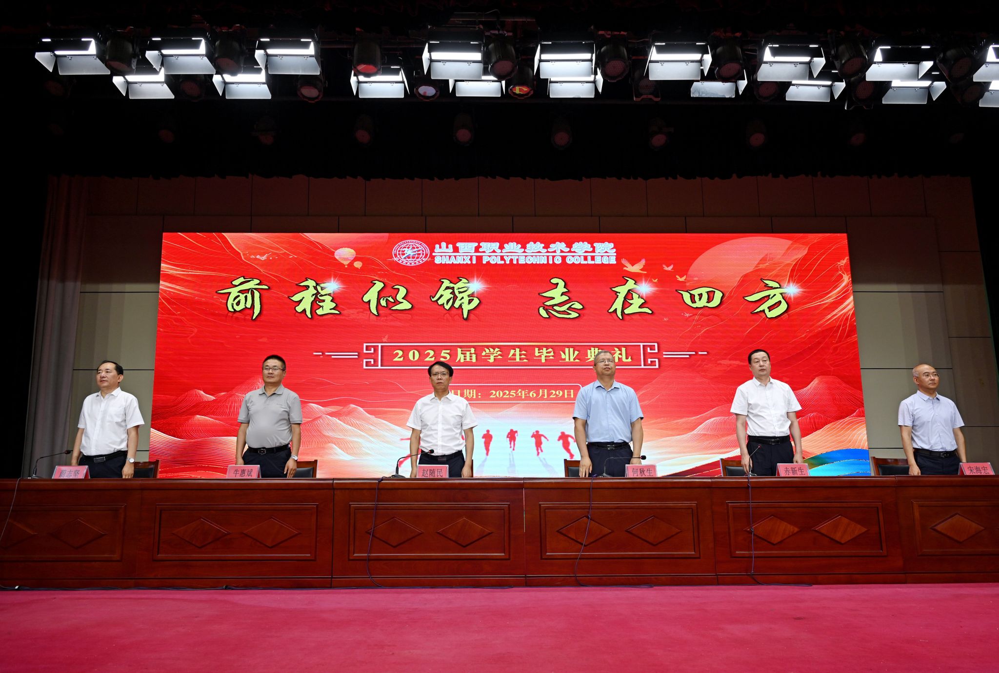 6月29日上午, 我院2025届学生毕业典礼在长风校区礼堂隆重举行,学院党委书记赵随民,党委副书记,院长何秋生,党委委员,纪委书记牛惠斌,党委委员,副院长蔚志坚,党委委员,宣传部统战部部长兼党政办公室主任宋海宏出席,相关职能部门负责人,系部领导班子 八戒影视,团学干部,专兼职辅导员和部分毕业生代表共同参会,会议由党委委员,副院长赤新生主持。