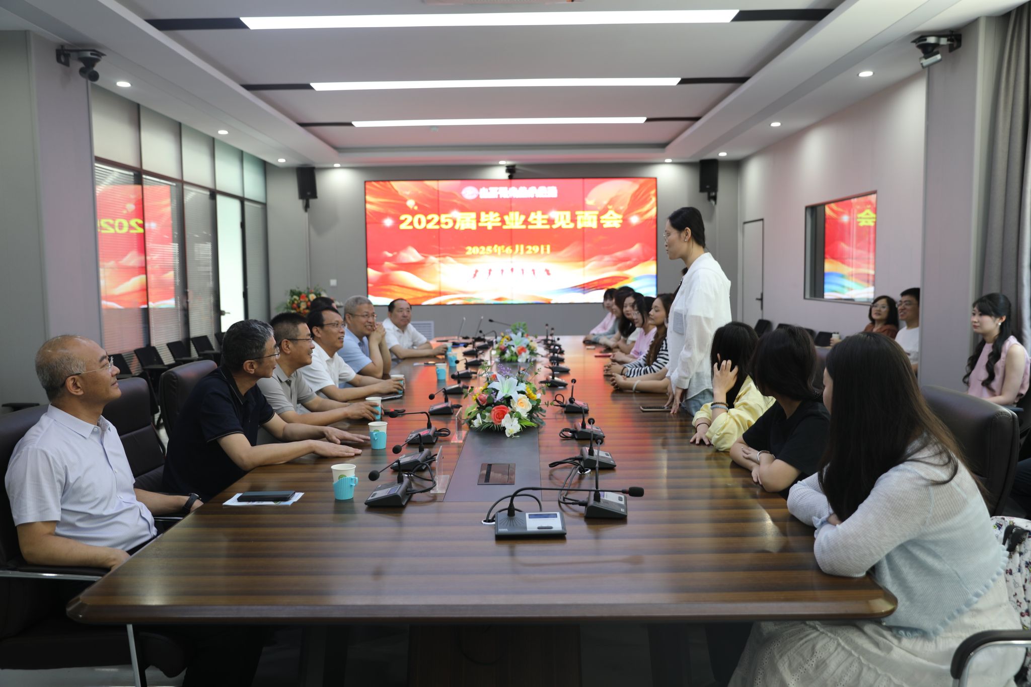 6月29日上午,我院在长风校区举行2025届毕业生代表座谈会,学院党委书记赵随民,党委副书记,院长何秋生,纪委书记牛惠斌,党委委员,副院长赤新生,李芳 八戒影视,蔚志坚,党委委员,宣统部部长兼党政办公室主任宋海宏等领导与毕业生代表亲切座谈,深入交流成长感悟,共商学院发展大计。