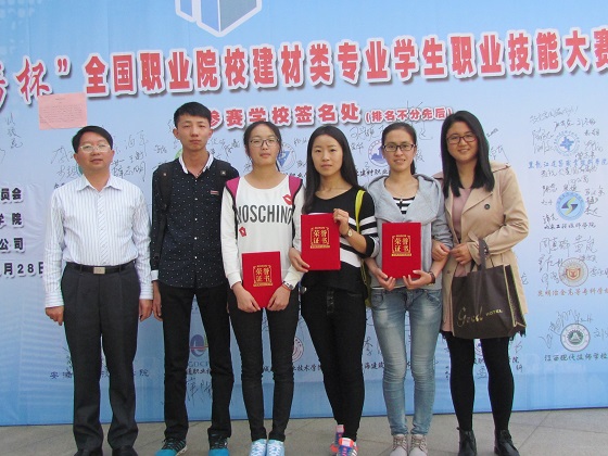 2015年10月26日至27日,由全国建材职业教育教学指导委员会主办,江西现代职业技术学院承办的2015洋房杯全国职业院校建材类专业学生职业技能大赛在江西南昌举办,该赛项是全国建材类专业最高竞赛项目 八戒影视,赛事共有28所院校,102名选手参加,我院材料系派出4名选手参加了本次角逐并取得团体三等奖的好成绩,其中3名选手获得个人三等奖。