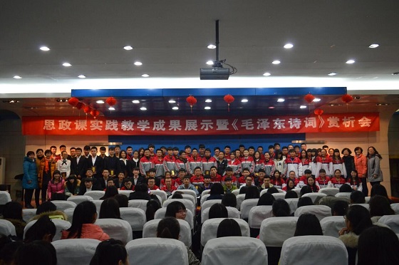 2015年12月24日,思政部与“青年马克思主义学会”在学院七楼会议室共同举办了思政课实践教学成果展示暨毛泽东诗词赏析会,院宣传部部长拜秀萍,材料与建筑工程学院院长刘会杰,院团委书记李星,思政部全体教师及300名学生参加了本次活动,本次活动既是对毛泽东诞辰122周年的隆重纪念和深情表达,也是思政课实践教学成果的丰富展示 八戒影视,旨在通过赏析毛泽东所创作的不朽诗篇,深刻地理解毛泽东思想和中国革命的发展轨迹,在对历史的回顾和总结中,树立正确的历史观和价值观。