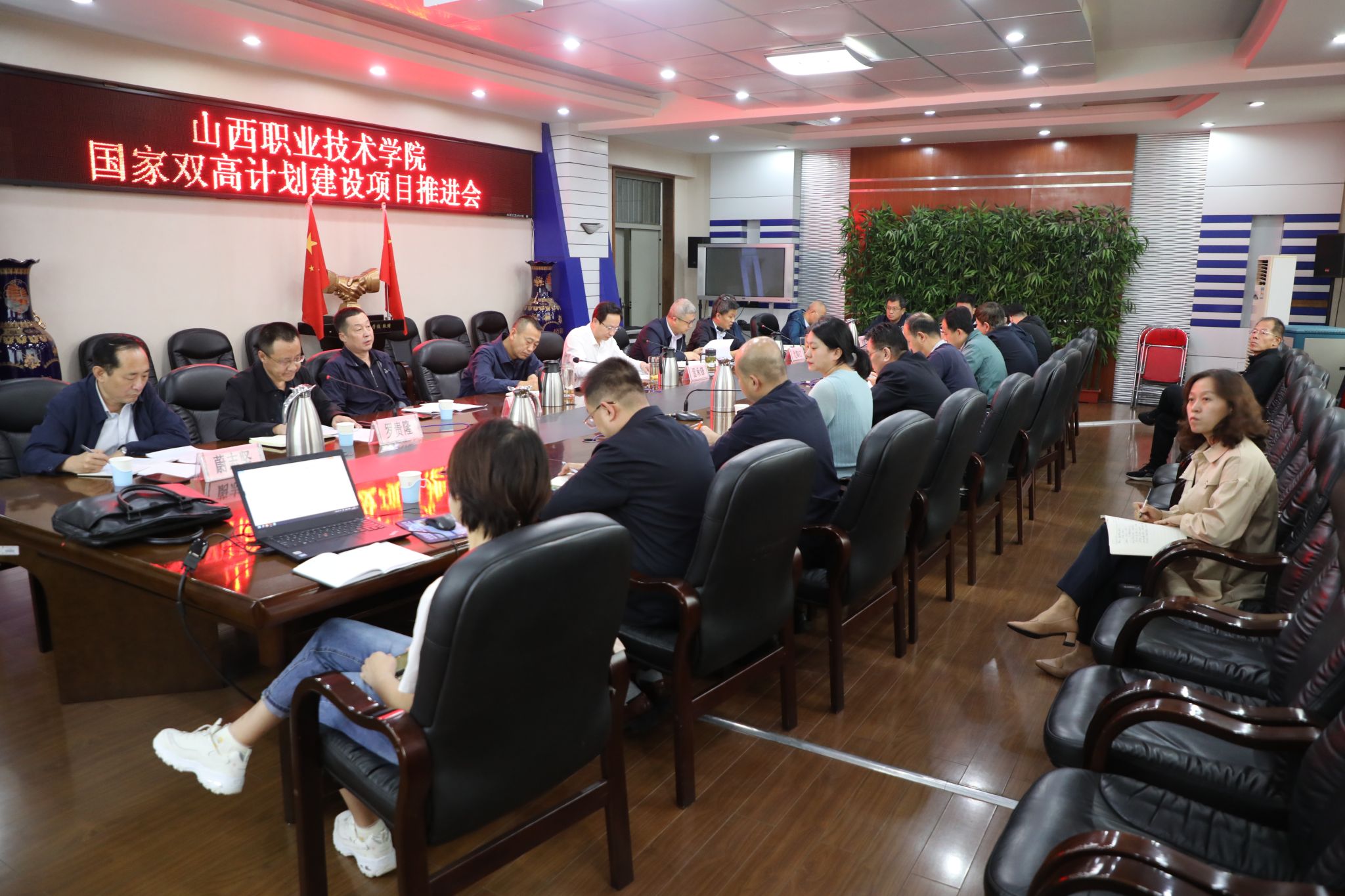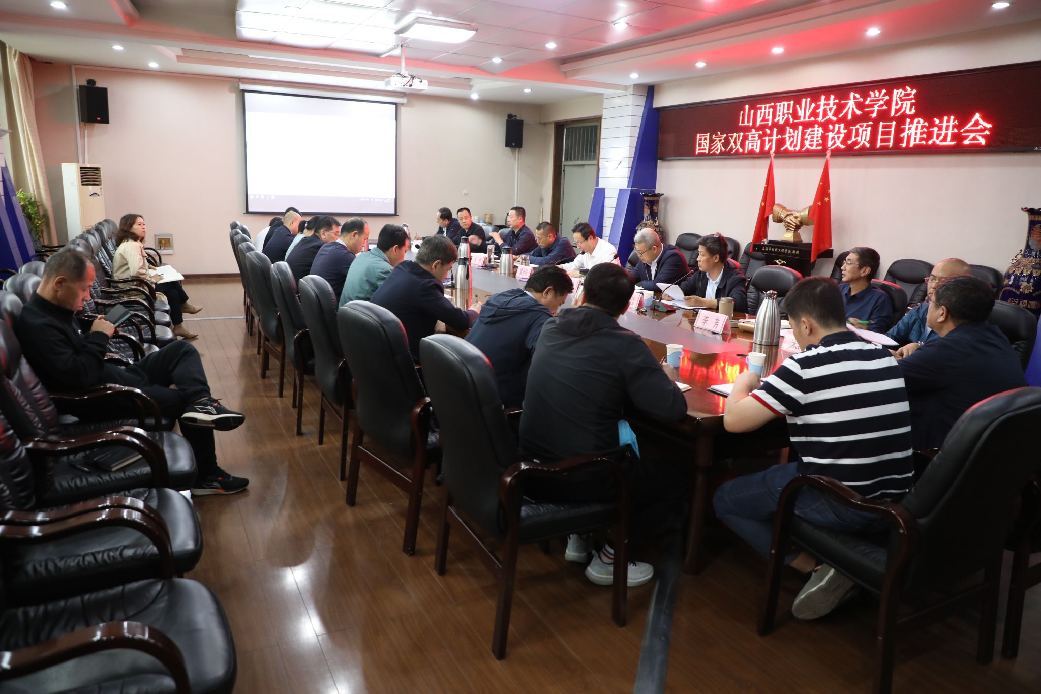 9月19日下午 八戒影视,学院在坞城校区教学楼四层会议室召开了2022年第二学期第四次国家双高计划建设项目推进会,学院党委书记雷承锋,院长何秋生等全部院领导出席会议,项目办,财务部,各子项目责任部门,大数据专业群等负责人参加了会议,会议由副院长尤陶江主持。