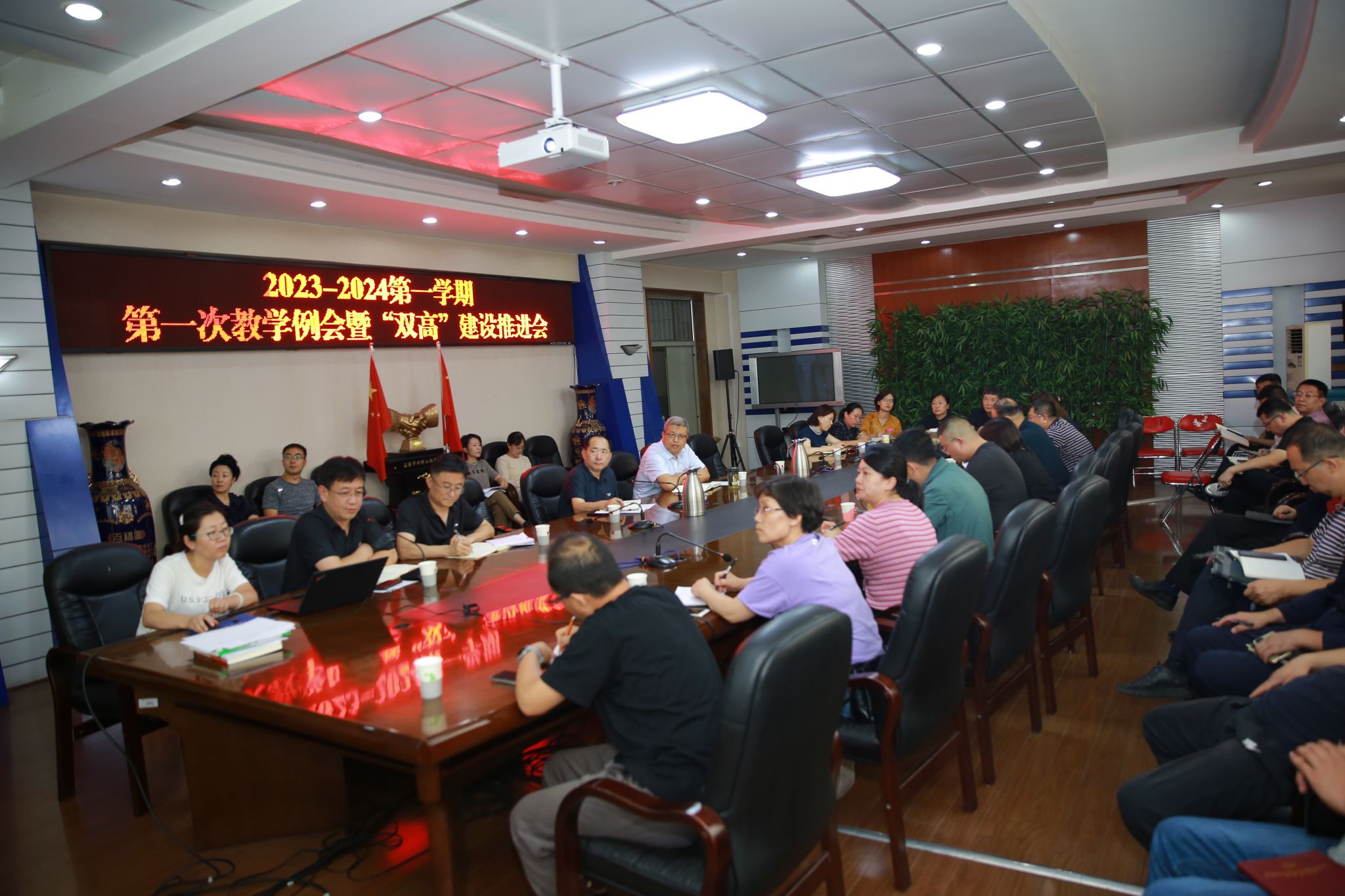 9月18日下午 八戒影视,学院在坞城校区教学楼四层会议室召开2023-2024学年第1次教学例会暨“双高”建设推进会,院长何秋生出席了会议,学院相关党政部门及各系部负责人参加了会议,会议由副院长蔚志坚主持。
