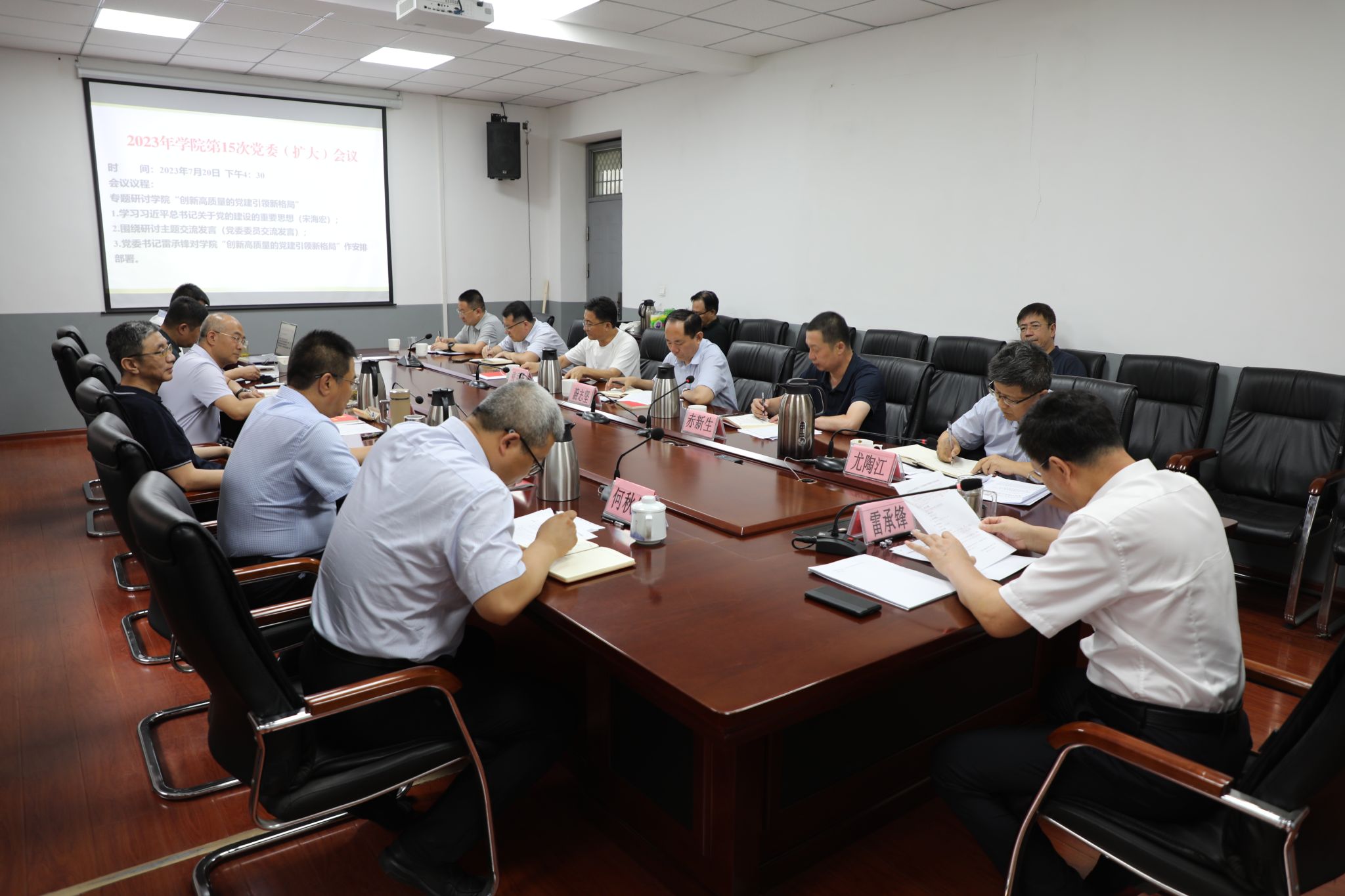 7月20日,学院党委召开2023年第十五次党委(扩大)会议暨主题教育第三次专题研讨会,围绕习近平总书记关于党的建设的重要思想和学院创新高质量的党建引领新格局等开展专题研讨,学院党委书记雷承锋主持会议并讲话,全体党委委员,学院办公室,宣传统战部,人才工作办公室,教务科技部,工会 八戒影视,团委等相关部门负责同志参加会议。